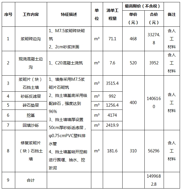 4、最高限价:总价报价和单价报价均不得超过以下限价